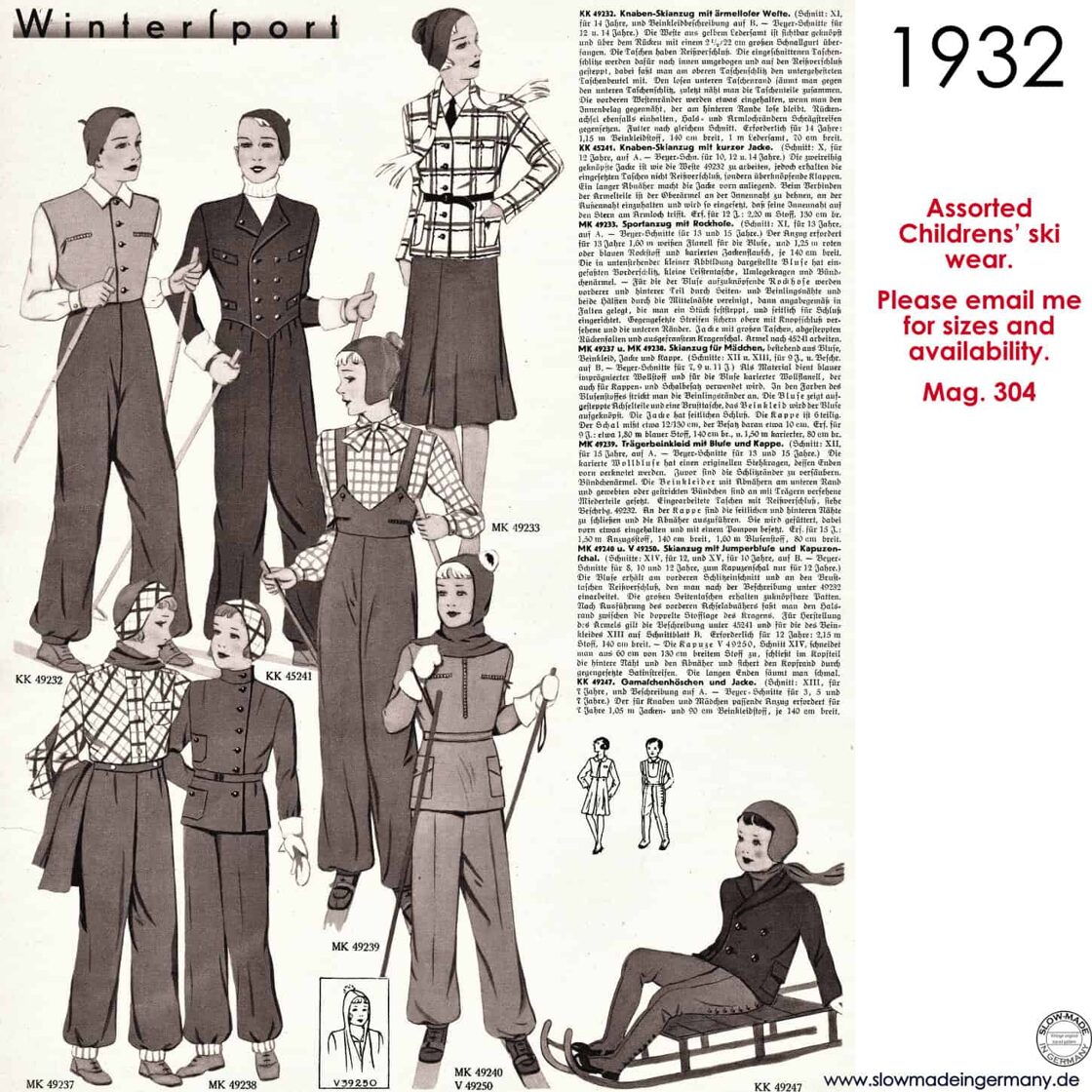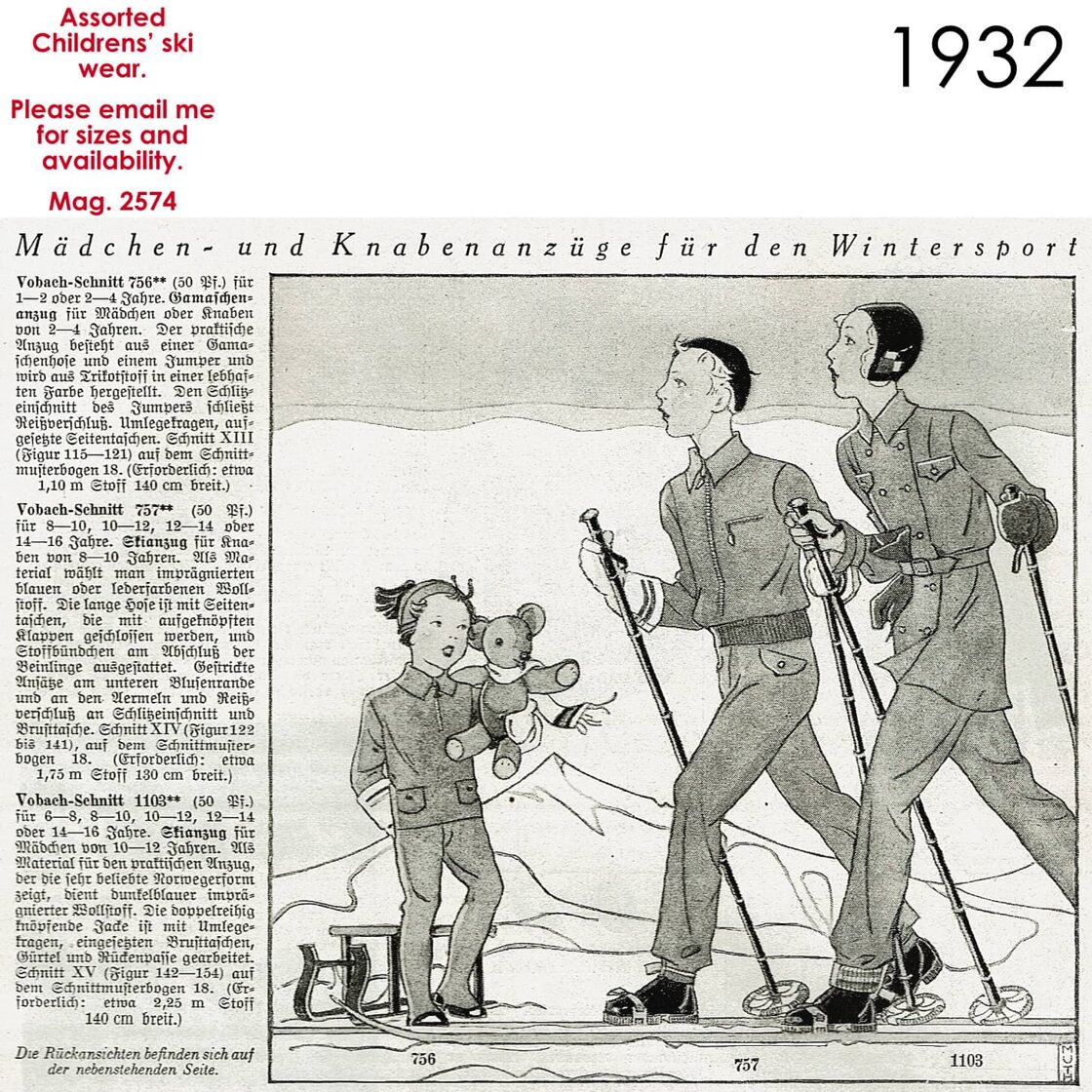 Original sketches 1930s kids skiwear patterns -