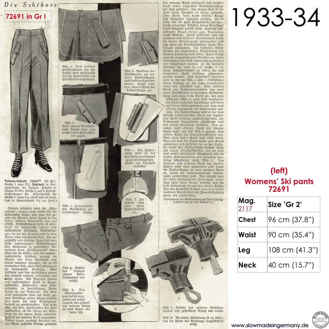 Original sketches 1930s ski pants pattern -