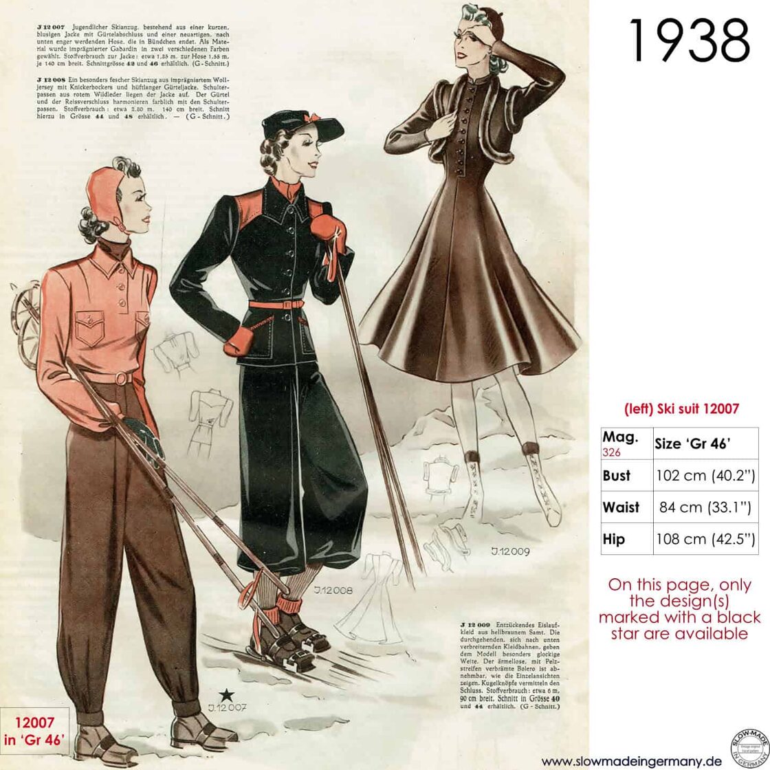Original sketches 1938 skiwear sewing patterns -